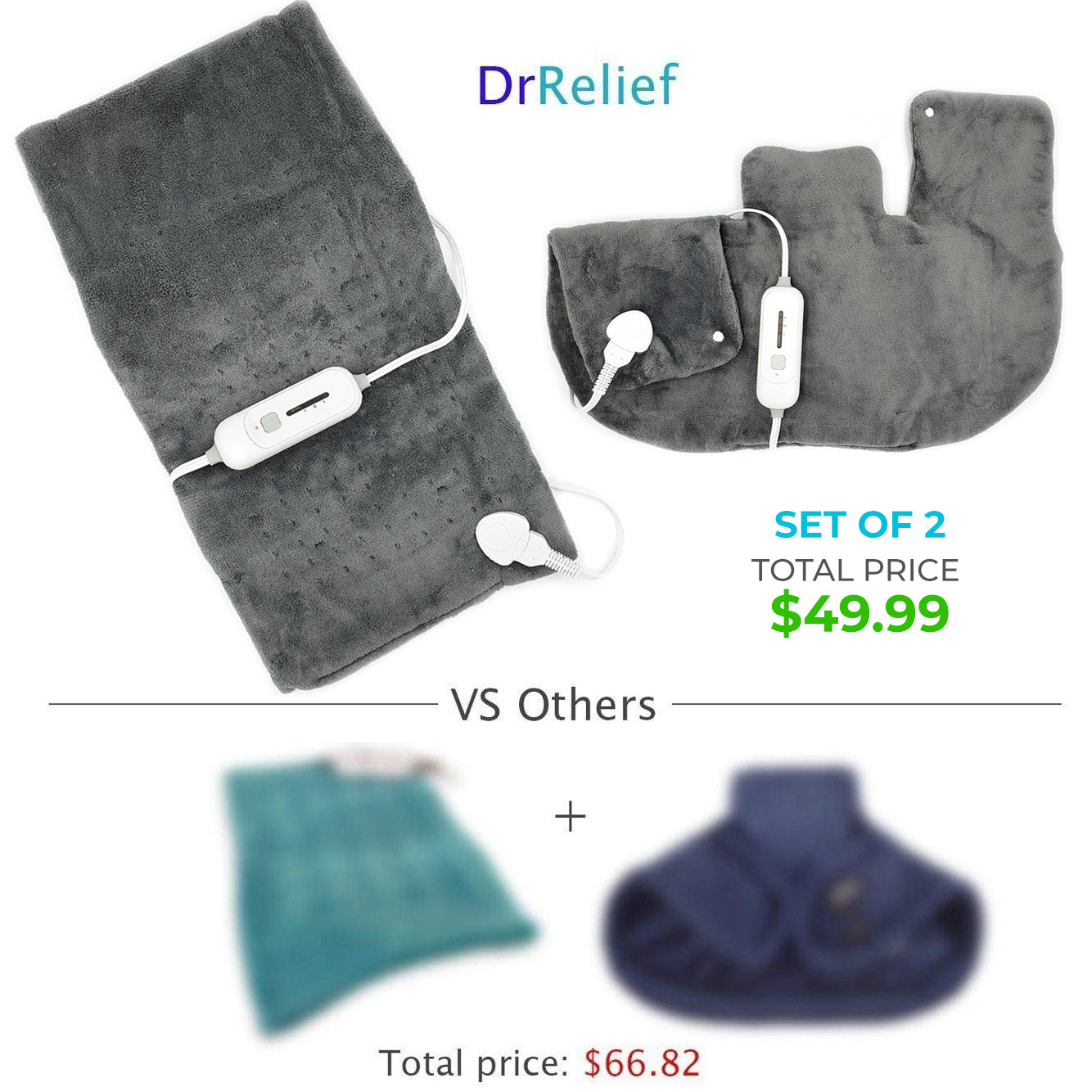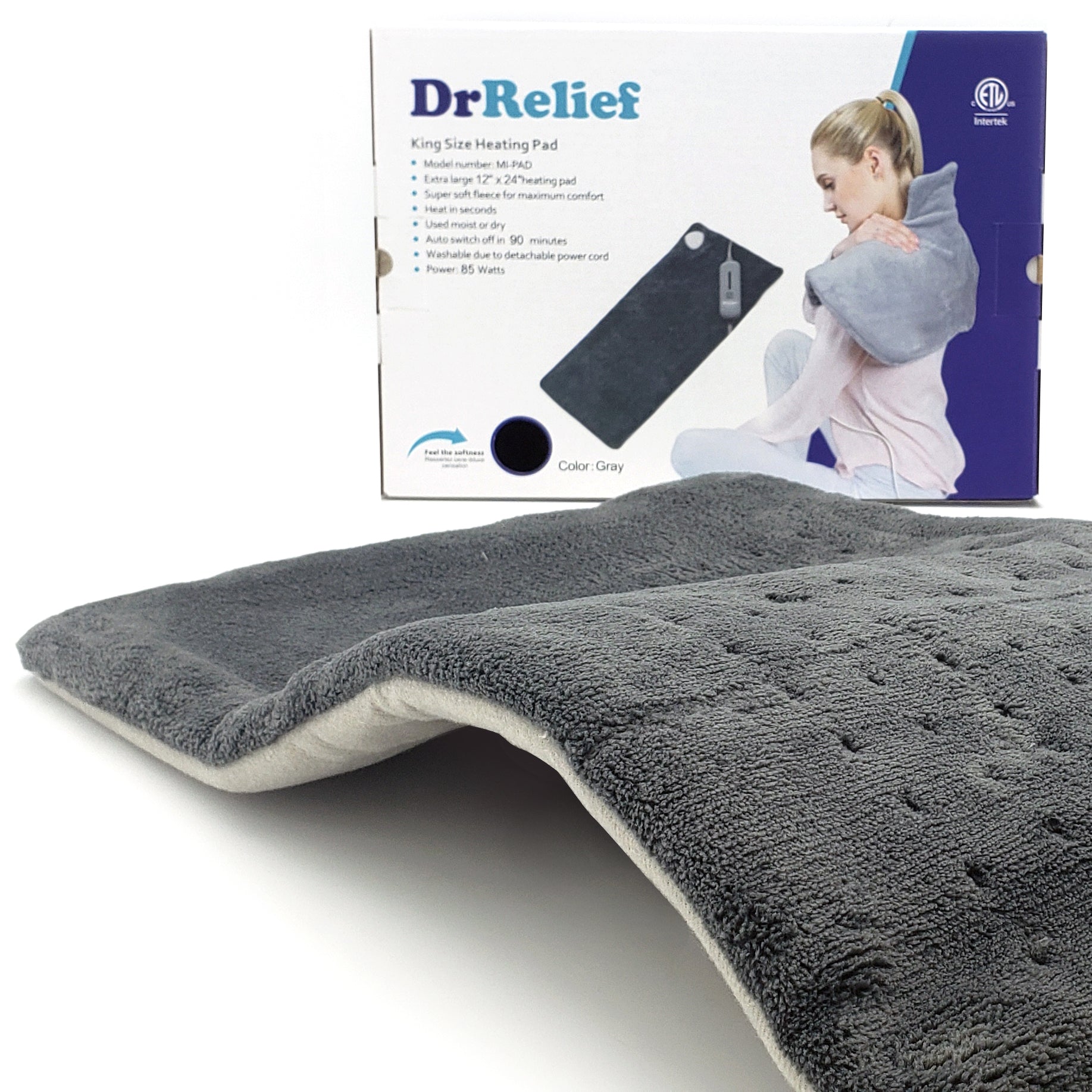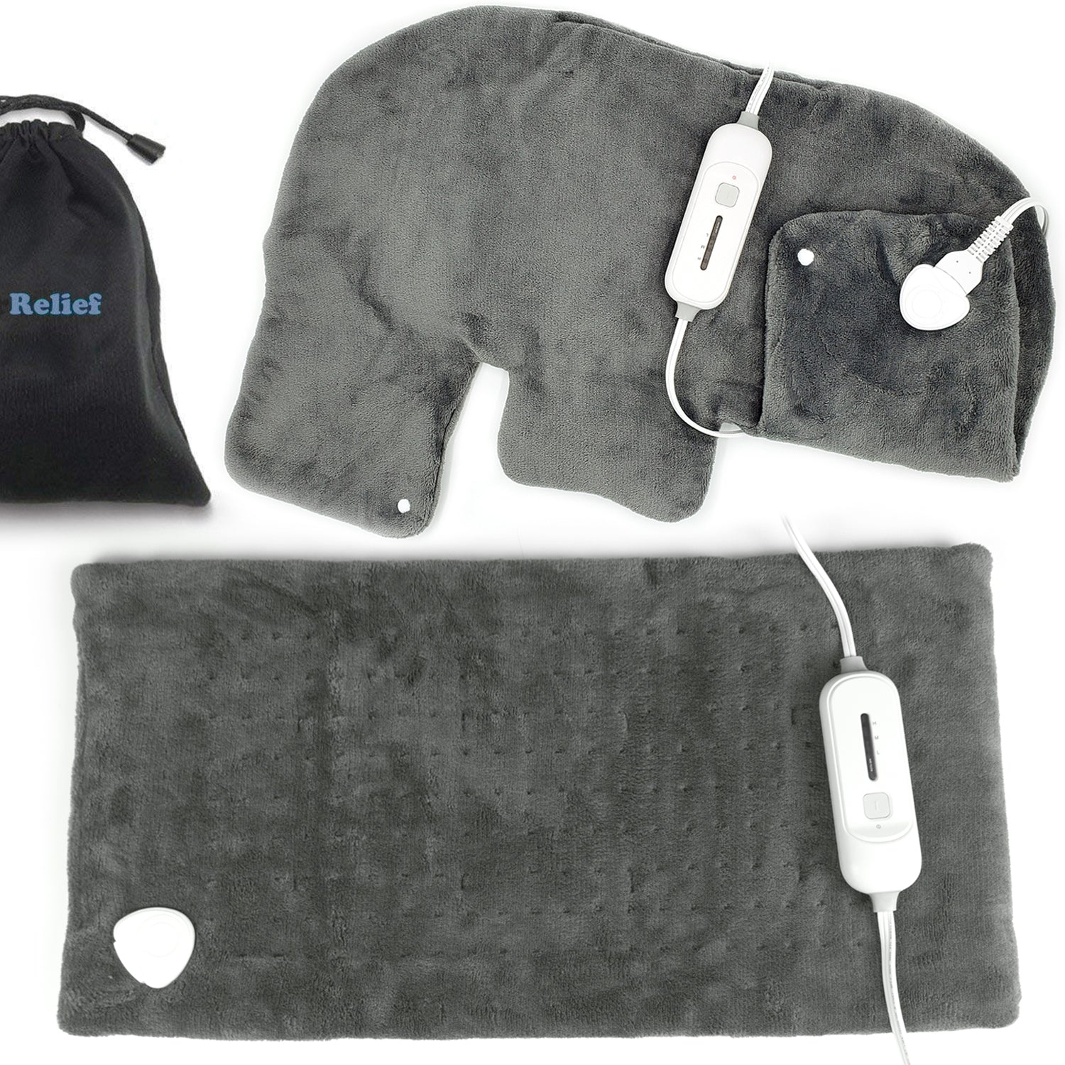 Dr Relief by SUNAID Premium Heating Pad Gift Set of 2 - King Size 18" x 25" Shoulder Heating Pad and 12" x 24" Fast Heating Wrap with Auto Shut Off for Back, Neck and Shoulder, Abdomen, Waist Pain Relief, Dry/Moist Option (Gray)