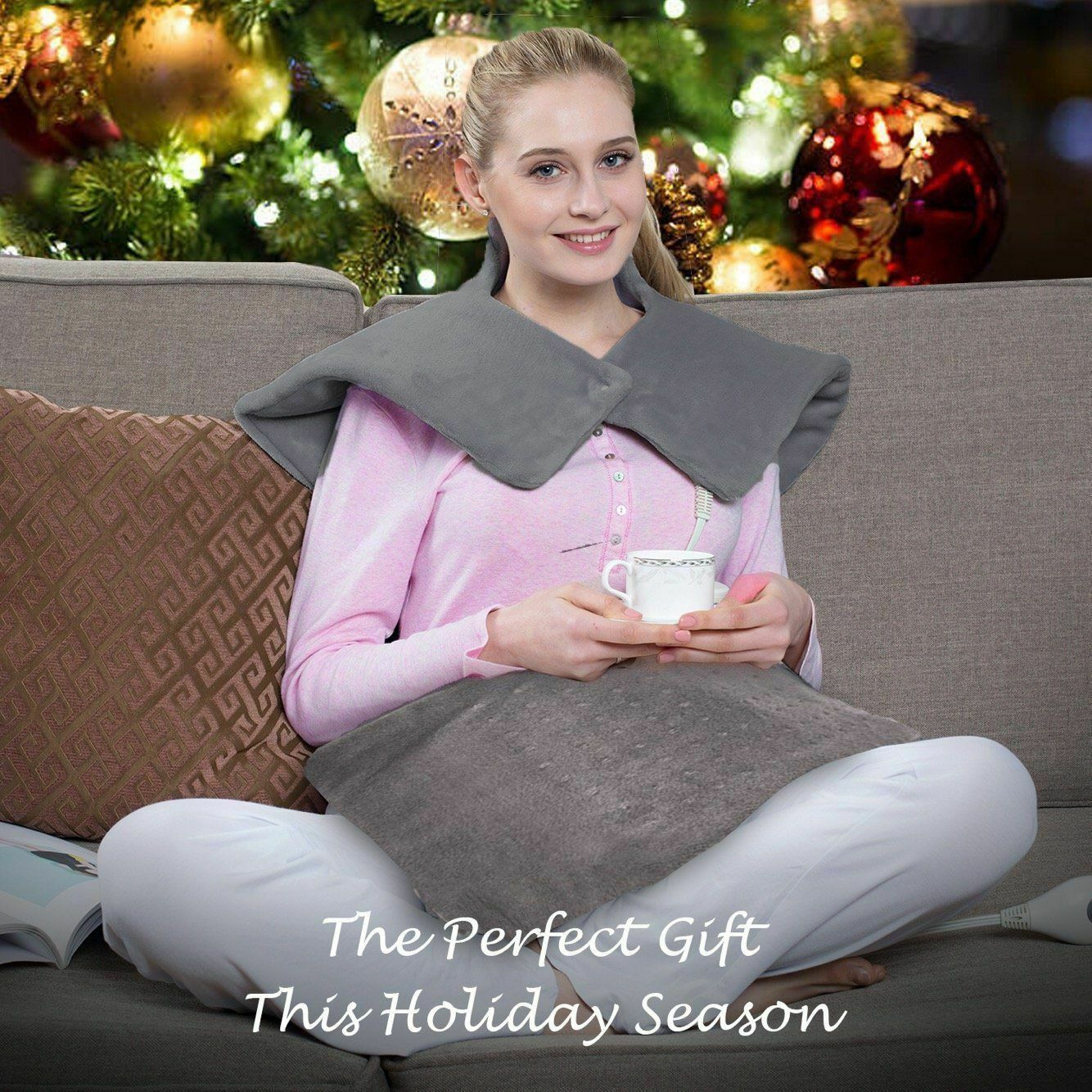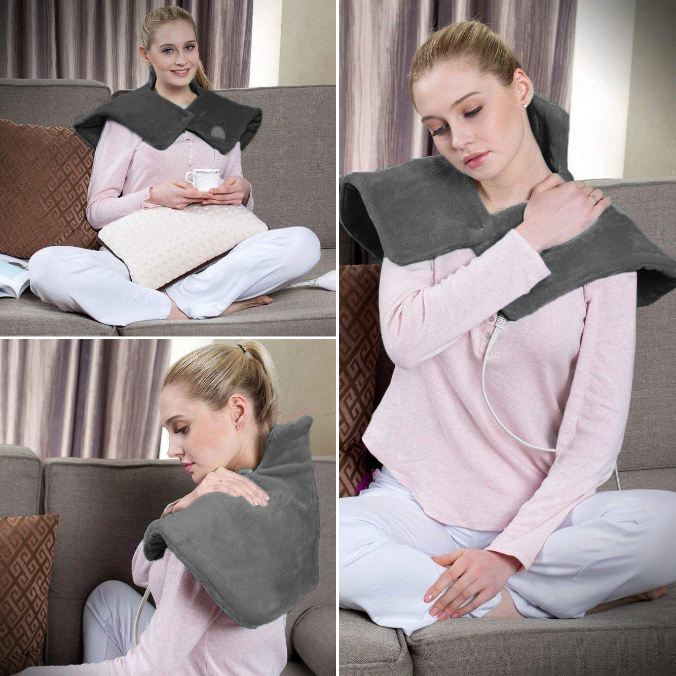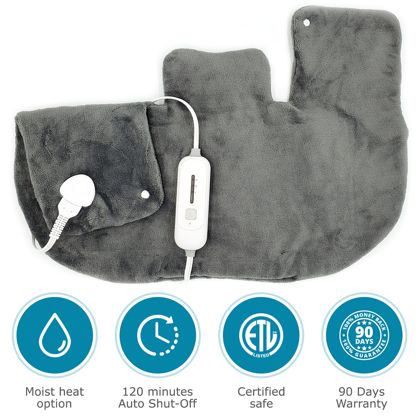 Dr Relief by SUNAID Premium Heating Pad Gift Set of 2 - King Size 18" x 25" Shoulder Heating Pad and 12" x 24" Fast Heating Wrap with Auto Shut Off for Back, Neck and Shoulder, Abdomen, Waist Pain Relief, Dry/Moist Option (Gray)