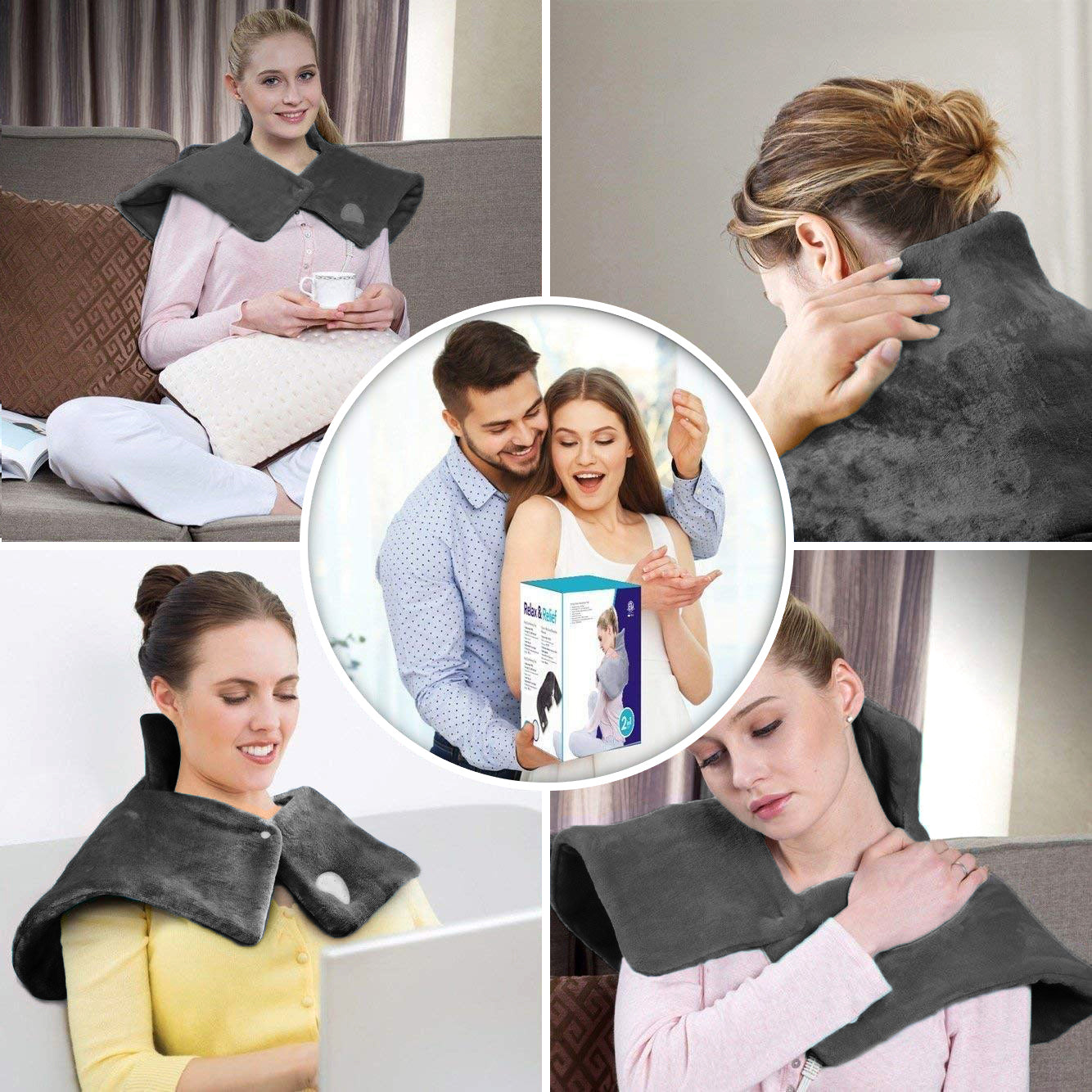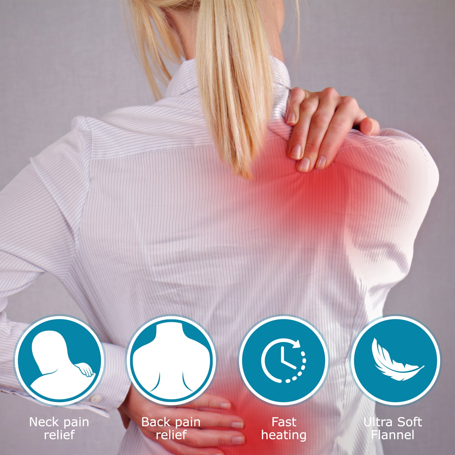 - TARGETED NECK PAIN RELIEF – The neck and shoulder heat pad can provide relief from ailments like tension, stiffness, headaches, and frozen shoulder. The deep heat therapy pads have been designed to contour to your neck and comfortably drape around your shoulders. Wearing this on a daily basis can ease your symptoms of fibromyalgia and provide natural healing without leaving your home.